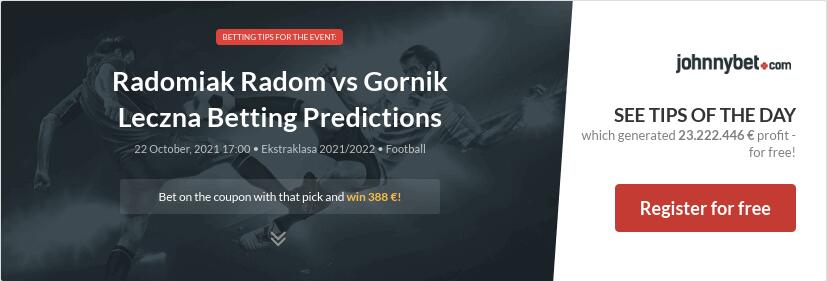 Radomiak – Górnik Łęczna. Radomiak Radom vs Górnik Łęczna Predictions Head to Head stats and Team Form stats including all comprehensive key stats such as BTTS Corner Stats Goal stats and much more. Nie dał szans czerwonej latarni. Są na to duże szanse zespół z Radomia jest najczęściej typowany.